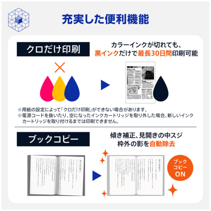 大容量シリーズは、1回のインク交換でモノクロ約3,000ページ、カラー約1,500ページの印刷が可能。