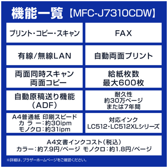 ●対応インクカートリッジ:LC512シリーズ(標準)、LC512XLシリーズ(大容量)