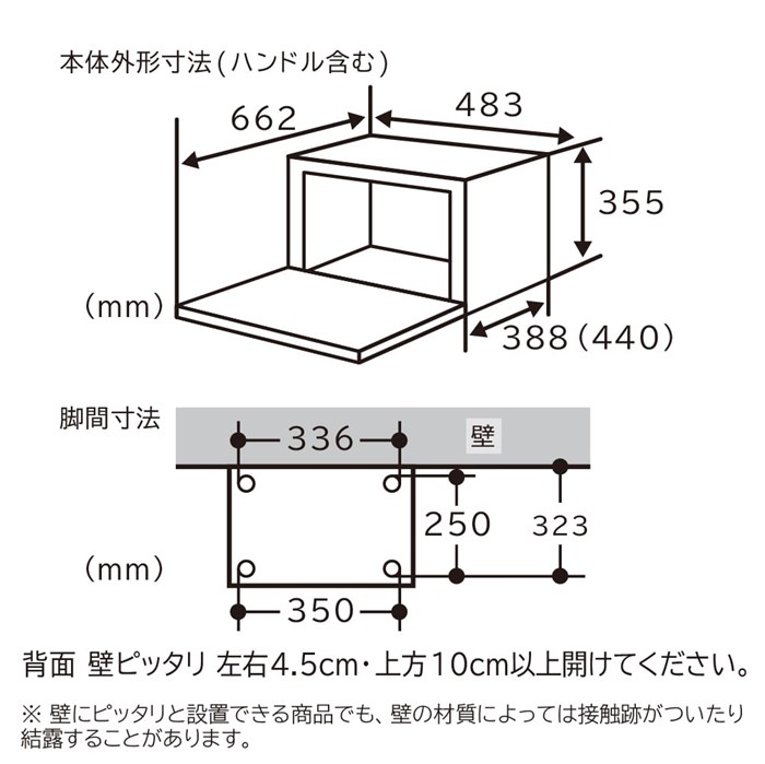 ・設置(設置時に確保する放熱スペース):背面 壁ピッタリ/左右4.5cm・上方10cm以上*7*8