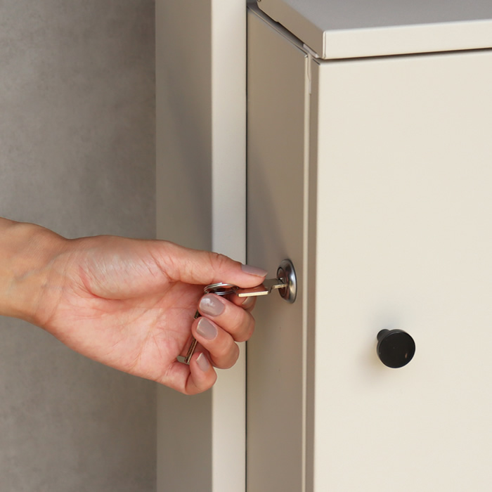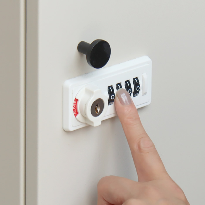 ■セキュリティ:下段は、ダイヤルロックとシリンダー錠(ダイヤル解錠番号が分からなくなった際の緊急用)でドアの開閉が可能です。