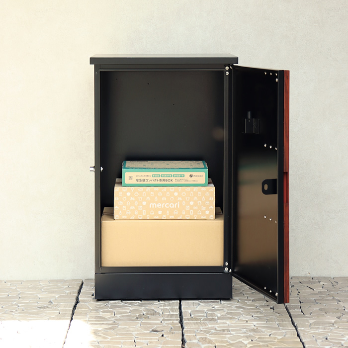 ■木目ライン:正面向かって左側面に木目ラインがあり、印象的なデザインの宅配ボックスとなります。