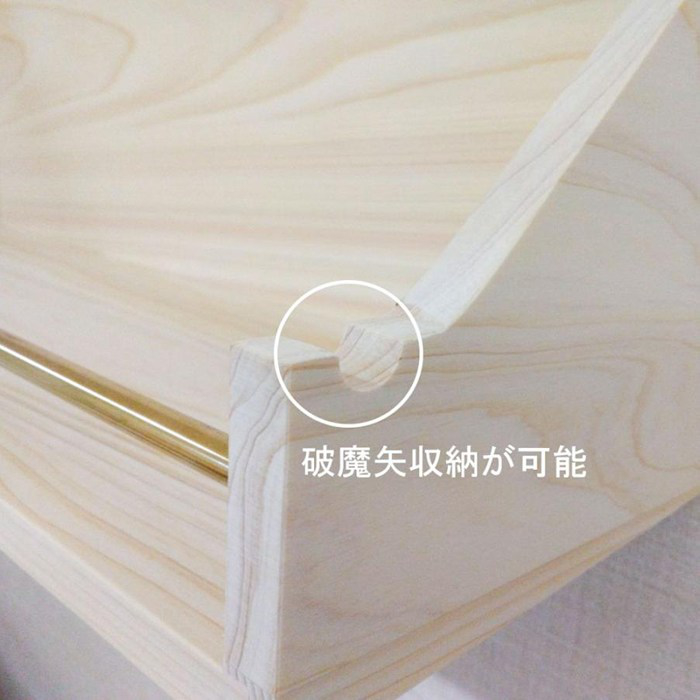 ■神棚板に直接お神札を置くことも可能で、すべり止めの溝と破魔矢の収納しペースがあります。
