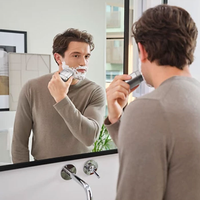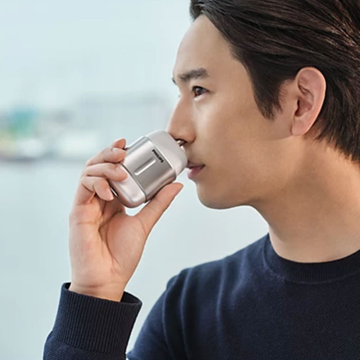 フィリップス 700 シリーズは、手のひらに収まるサイズに、回転式の最上級のシェービングシステムを搭載。コンパクトなので、いつでも、どこでもしっかりシェービング。お仕事の後の夕方の外出前に、また、旅先や出張先でなど、より手軽に回転式の心地よさを実感いただけるサイズです。また、ワイヤレス充電やスワイプ操作など、先進のテクノロジーを搭載するとともに、鼻毛トリマーも付属。ヒゲのみならず、身だしなみケアをさっと簡単にできるようになりました。