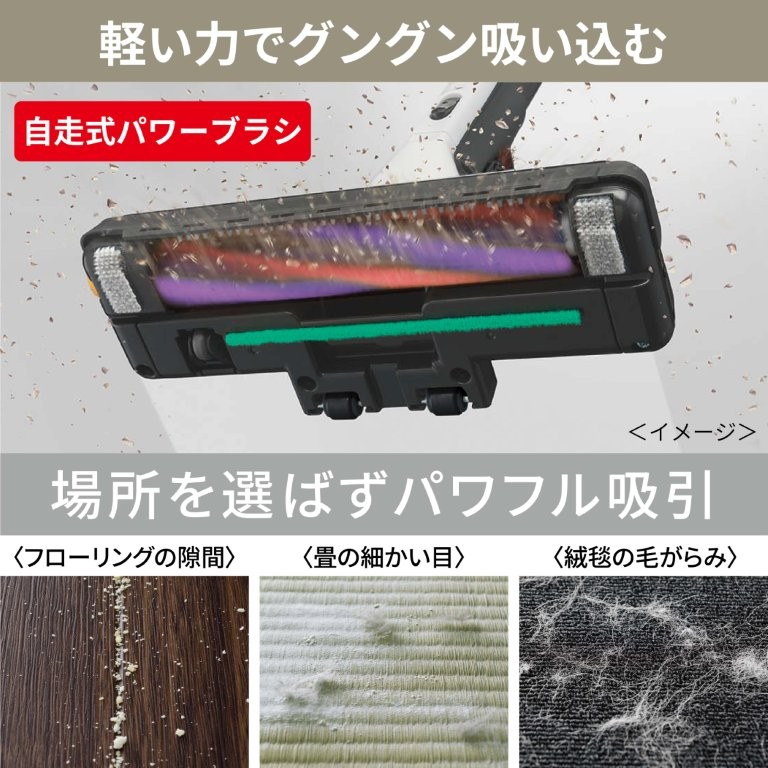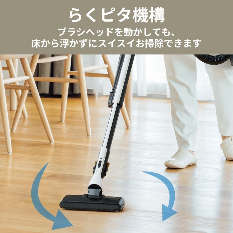 ■操作性能:フラットヘッド機構 / 壁ぎわスッキリバンパー / すみずみブラシ(伸縮パイプ先端部、手元ハンドル部) / かるスマグリップ / ビッグハンドル / 大容量紙パック / らくピタ機構 / 快速からみにくい自走ブラシ / らくリーニングヘッド / 毛がらみ除去機能