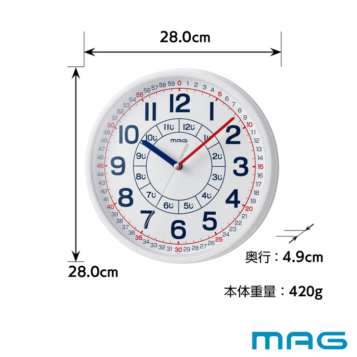 知育時計はカラフルで子供っぽいデザインのものが多く、時計としての視認 性が低く普段使いには向かないことも。しかし知育時計 よ?めるはご家庭 の掛け時計としても使えるように落ち着いたデザインながらも子供が覚えやすいようにハッキリとした色合いで作られています。