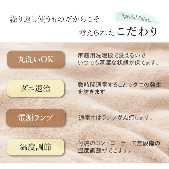 ■機能:コントローラー無段階温度調節・ダニ退治・洗濯可能・頭寒足熱配線