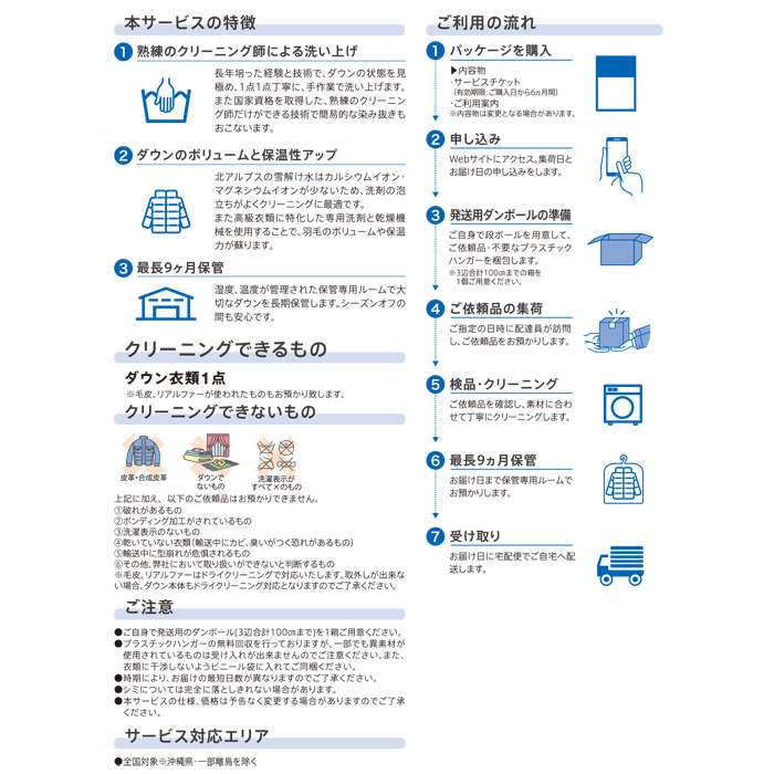 手洗いダウンクリーニングプレミアムには、以下のオプションがついています。
