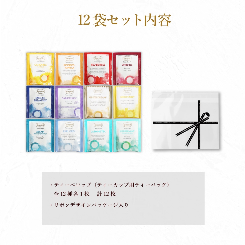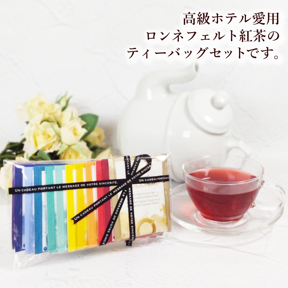 大人気のロンネフェルト紅茶のティーバッグプチセット。 紅茶をはじめハーブティー、緑茶など様々なティーがお楽しみいただける紅茶のギフトとなっています ロンネフェルト初心者の方にもおすすめです。 リボンデザインのパッケージですので このままプレゼントとしてもお使いいただけます。 この度 ご要望にお応えして、8袋セットが仲間入りしました! ちょっとしたプレゼント、ためしに少し飲んでみたい、という方は8袋セットがおすすめです。 全種類を飲み比べしたい!、紅茶好きの方への贈り物に…という方は12袋セットがおすすめです。 8袋セットと12袋セット、ご用途に合わせてお選びください!