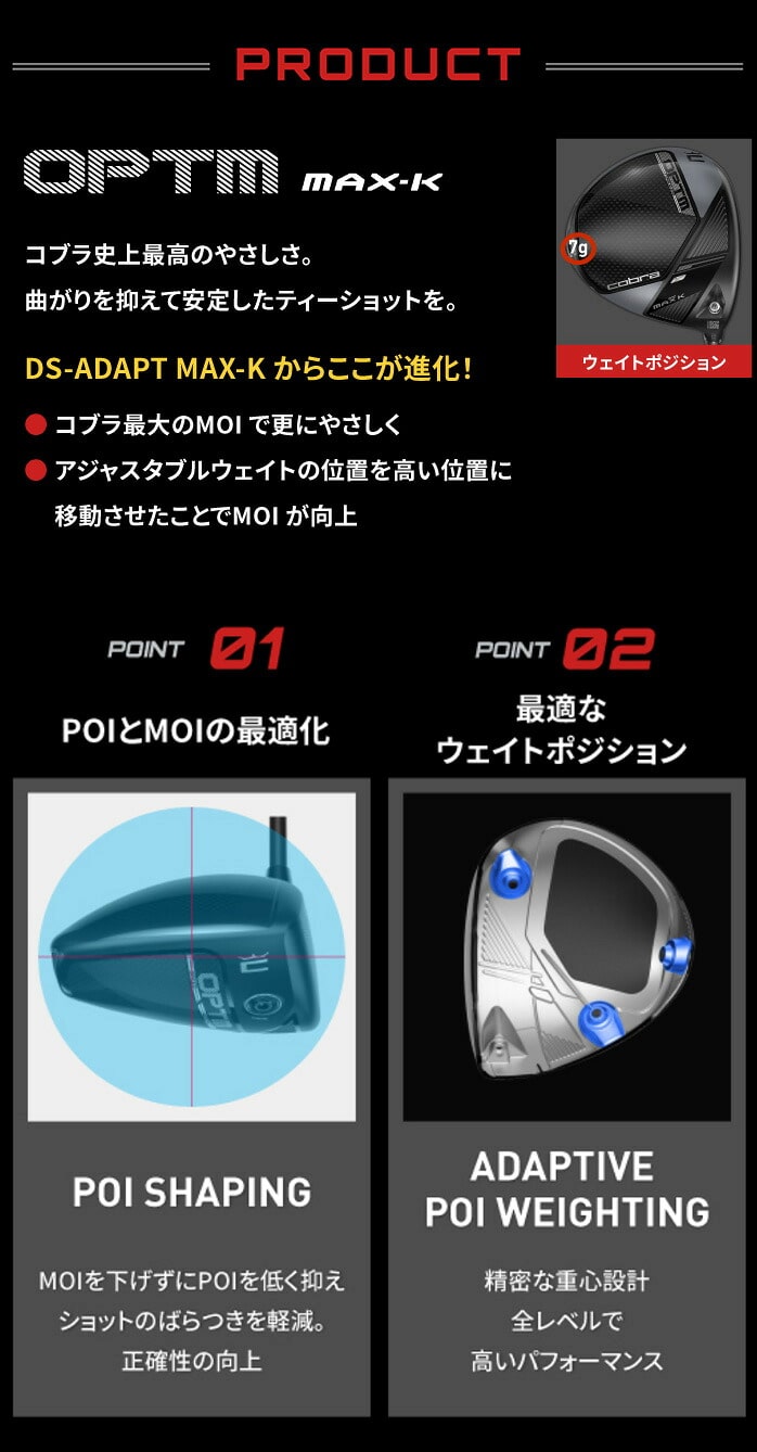 コブラ OPTM MAX-K ドライバー メンズ 右 9 10.5 12 カーボンシャフト