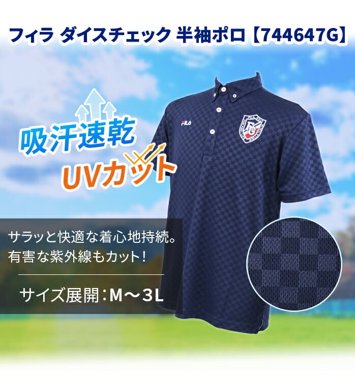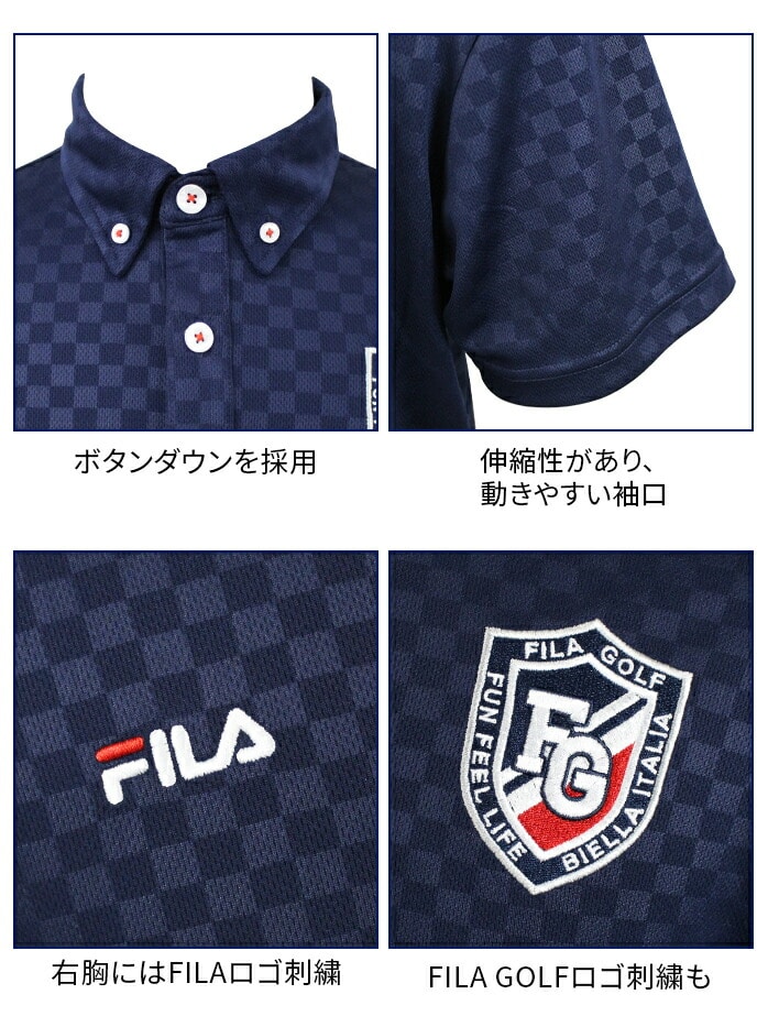 フィラ ゴルフ 半袖 ポロシャツ 744647G サックス LL L M ダイスチェック 総柄 FILA