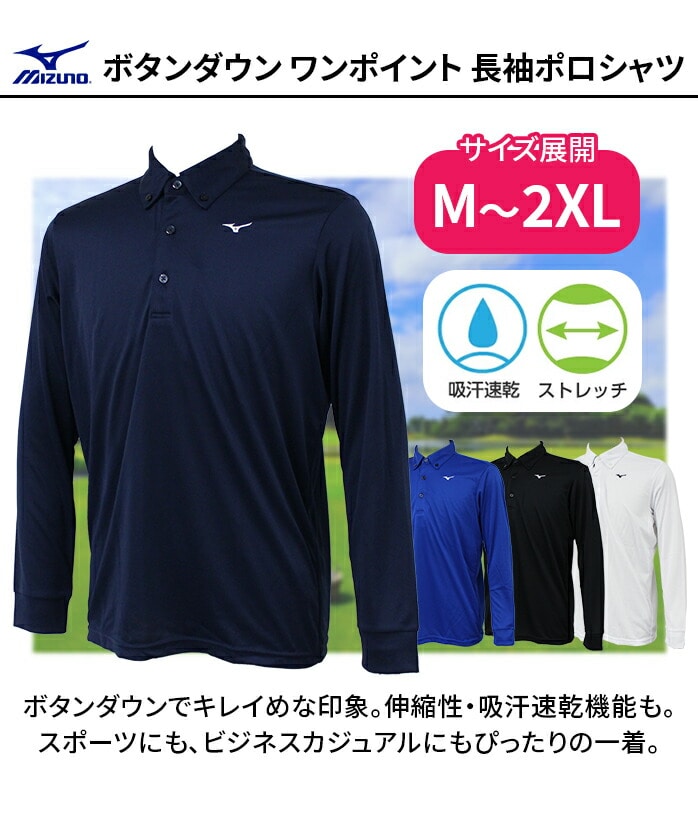 ミズノ MIZUNO ゴルフ ボタンダウン 長袖 シャツ ポロシャツ ポロ メンズ 吸汗速乾 動きやすい ビジカジ