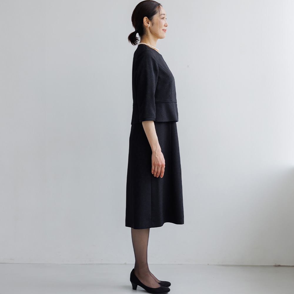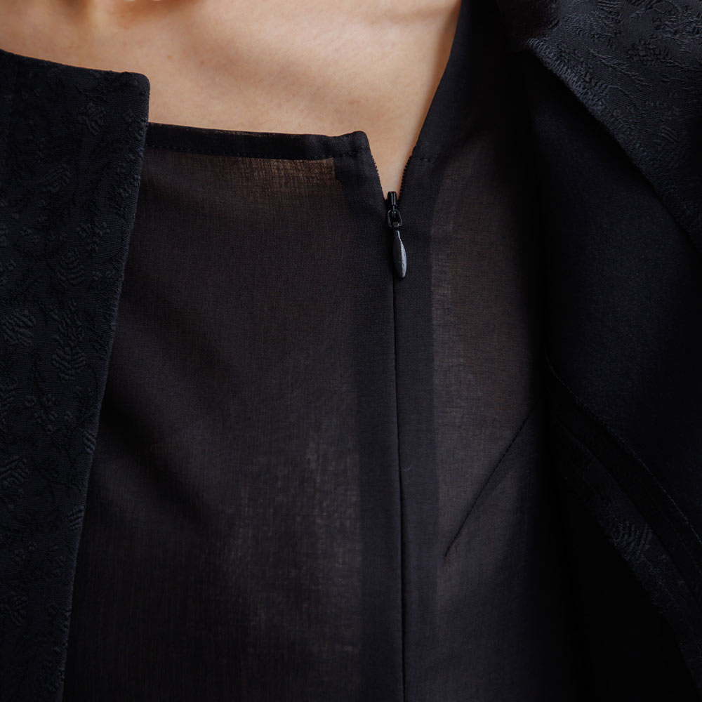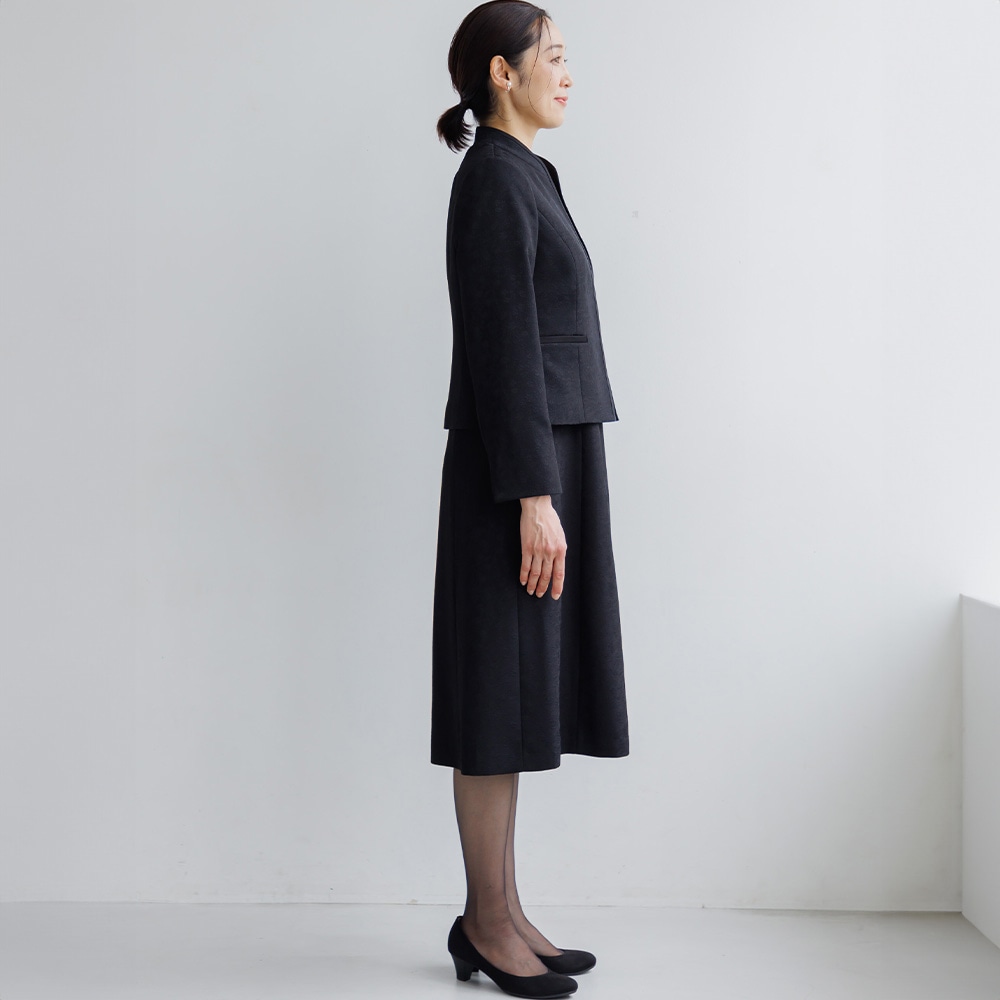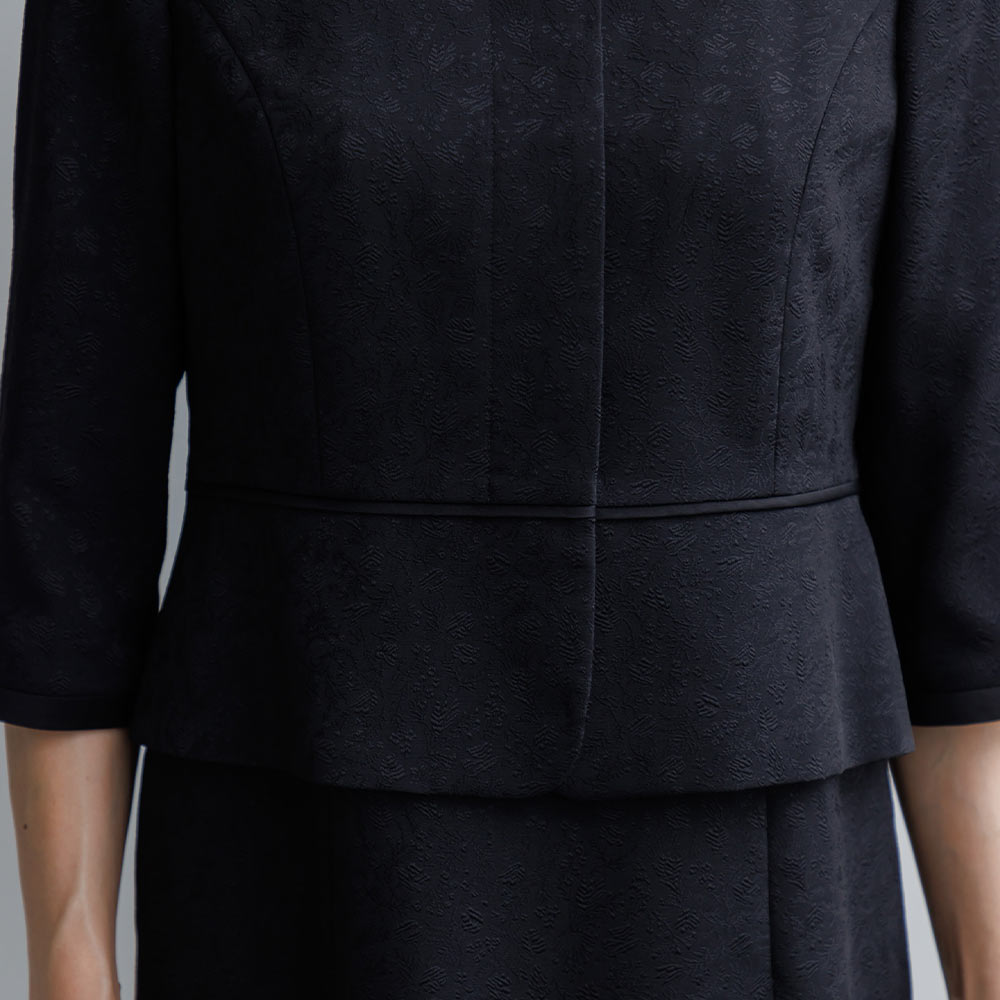 表地は立体感のある小花柄のジャカード素材を使用。上品な美光沢で大人エレガントな装いに。