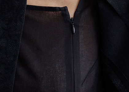 ワンピースの胸元にファスナーを取り付けました。着脱の際に後ろに手を伸ばす手間がない便利な仕様です。