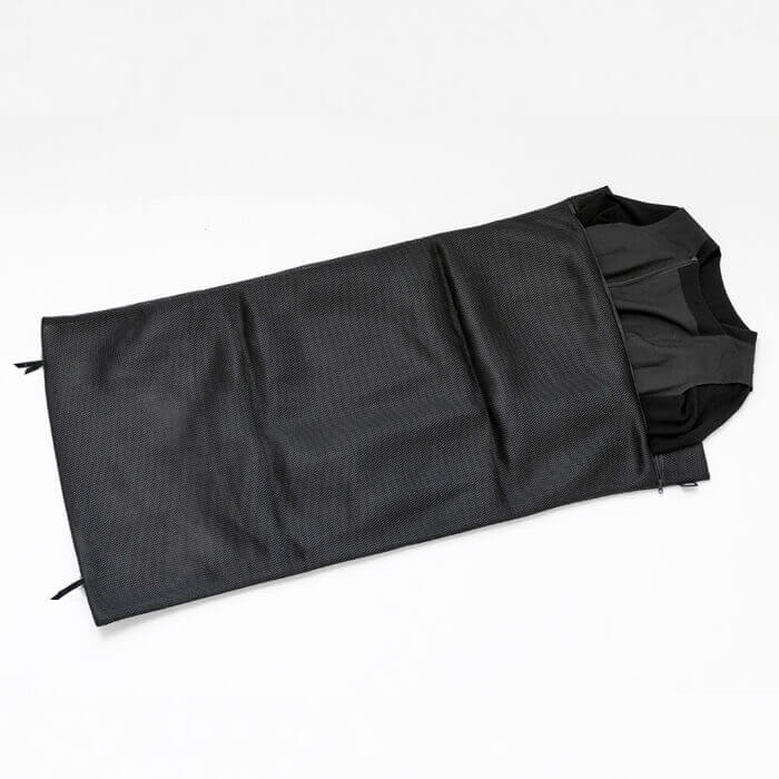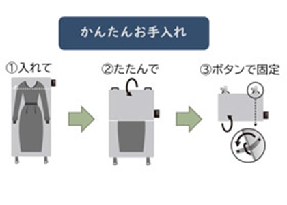 ワンピースもすっぽり入る大判サイズ。 ワンピースを入れて形を整え、三つ折りします。 折り畳んだ端をスナップで固定してお洗濯してください。