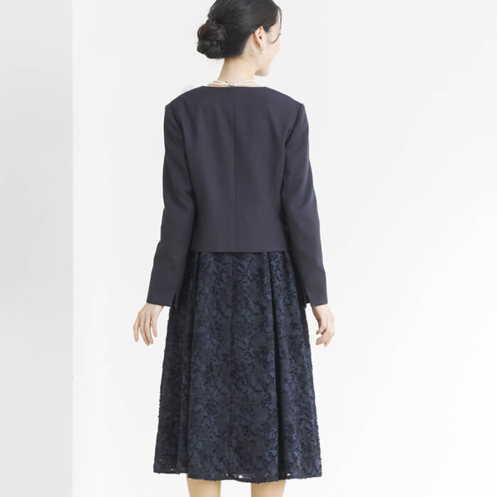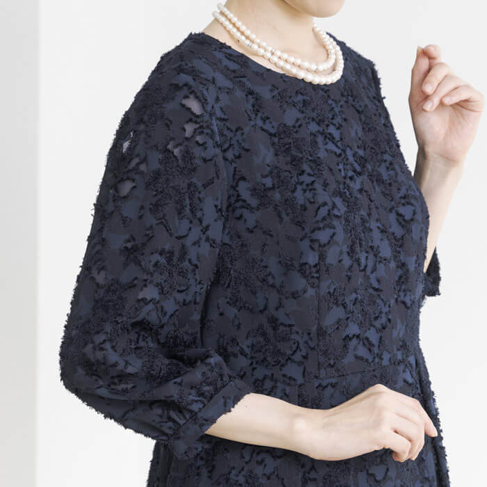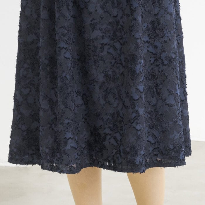 カットジャカード素材が主役のワンピース。 華やかな印象です。