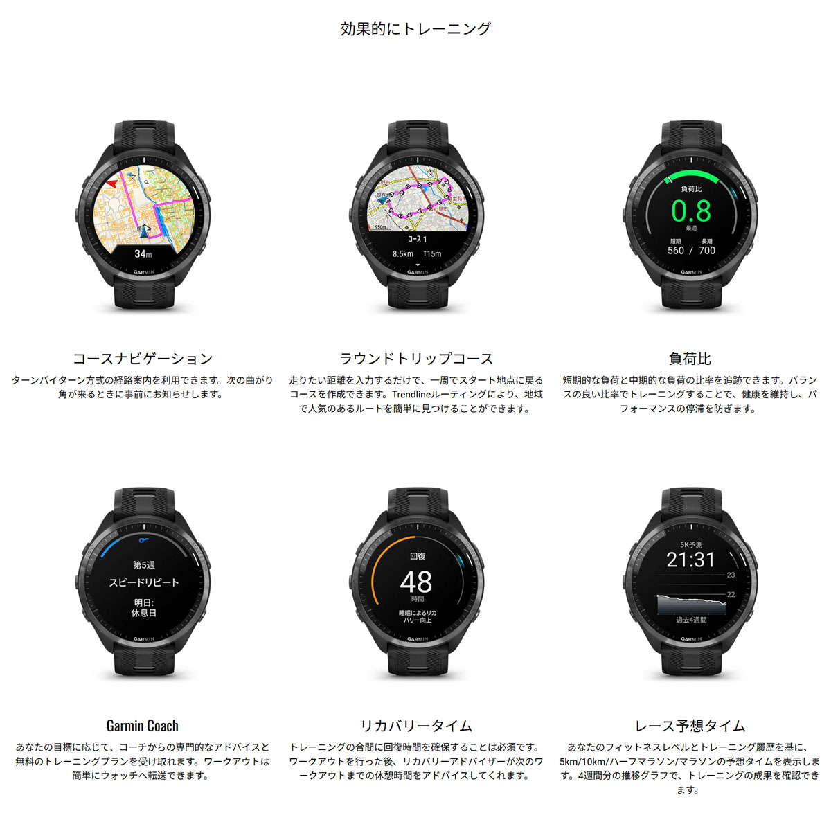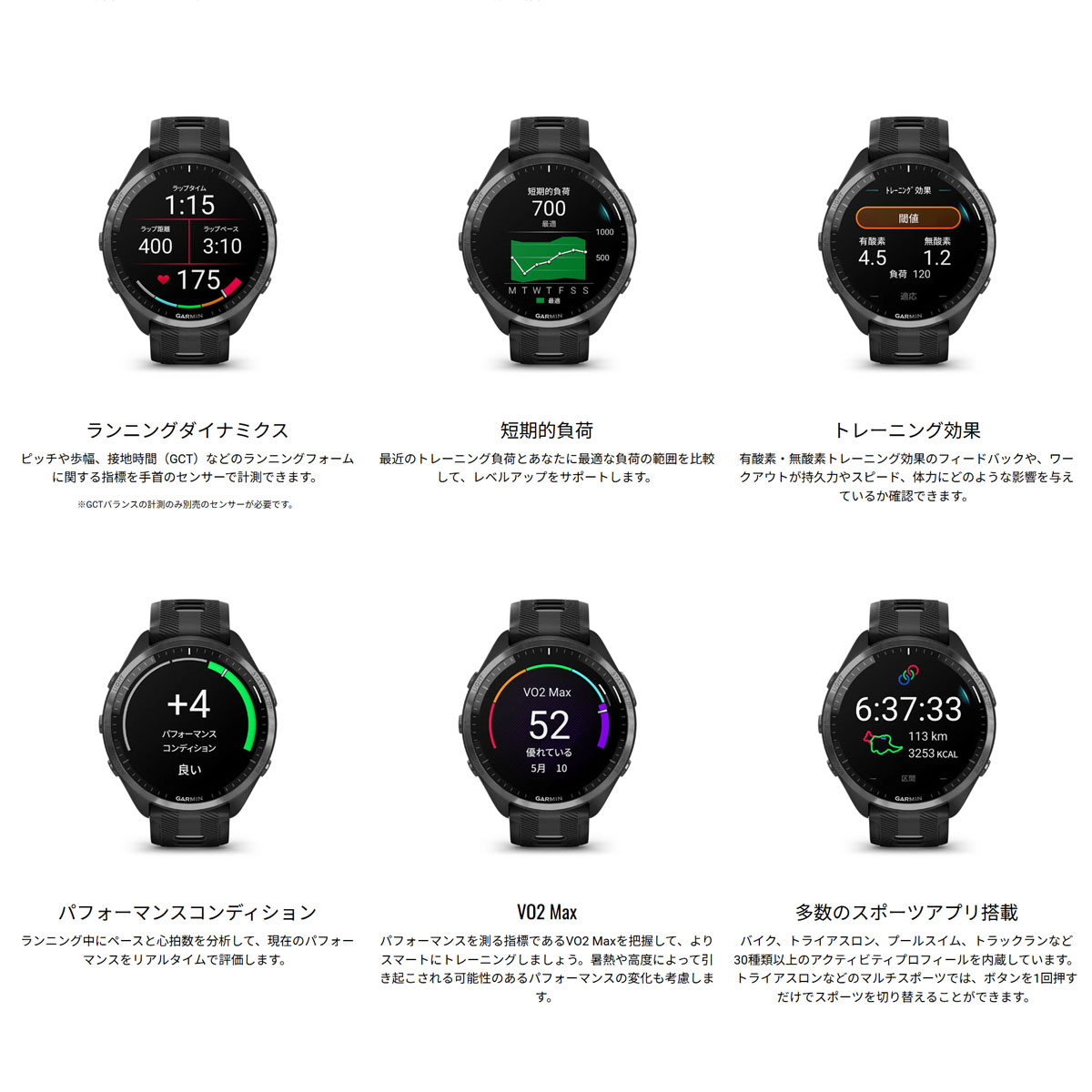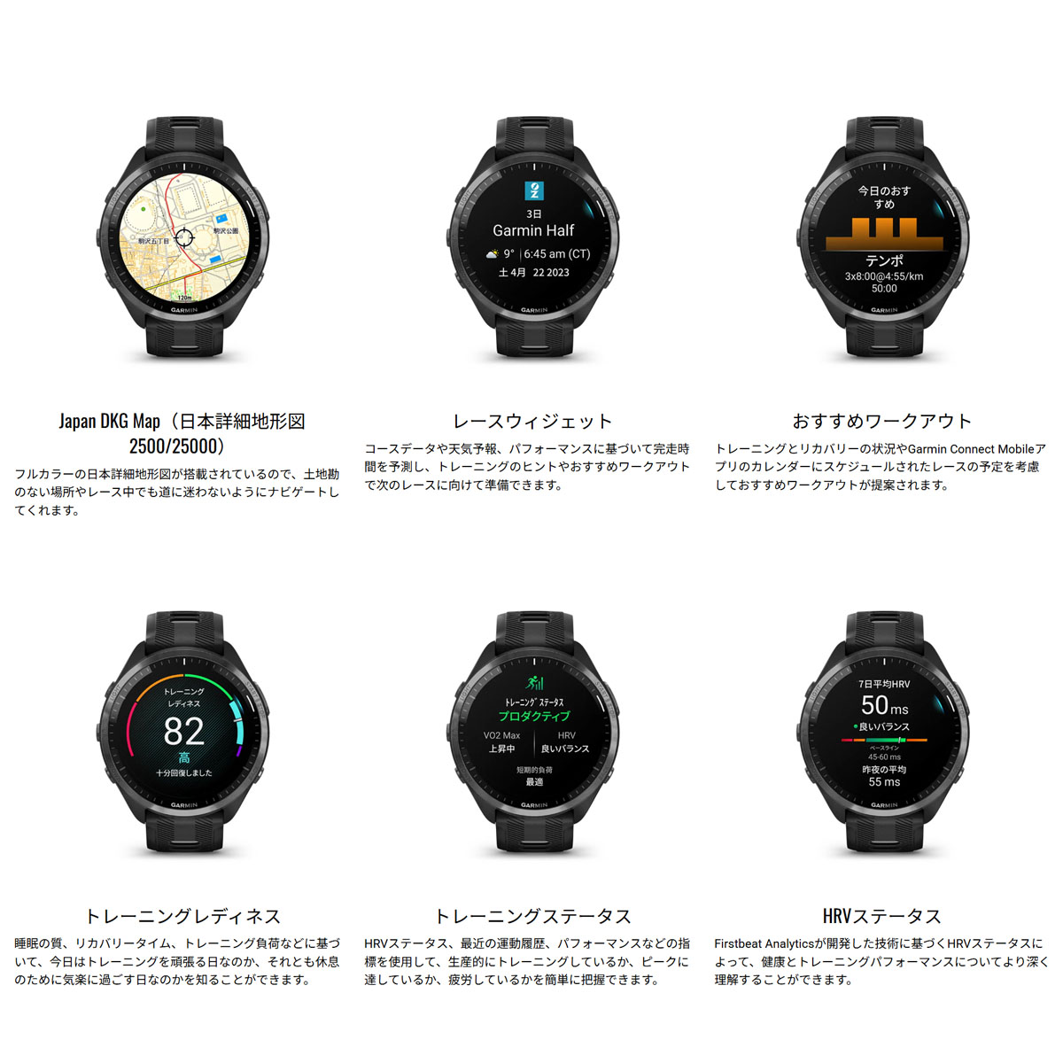 ■トレーニング機能:HRV(心拍変動)ステータス、トレーニングレディネス、レースウィジェット、ランニングパワー、リアルタイムスタミナ、モーニングレポート、おすすめワークアウト(毎日・7日間)、トレーニングステータス(精度向上)、インターバルプロフィール、VO2Max、パフォーマンスコンディション、トレーニング効果、トレーニング負荷、ランニングダイナミクス、リカバリーアドバイザー