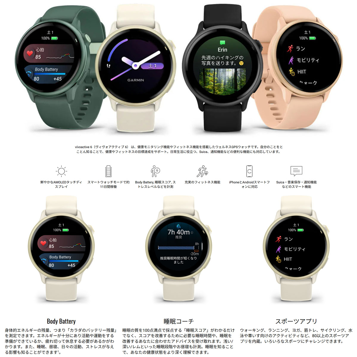 ガーミン GARMIN vivoactive 6 ヴィヴォアクティブ6 GPS スマートウォッチ ライフログ