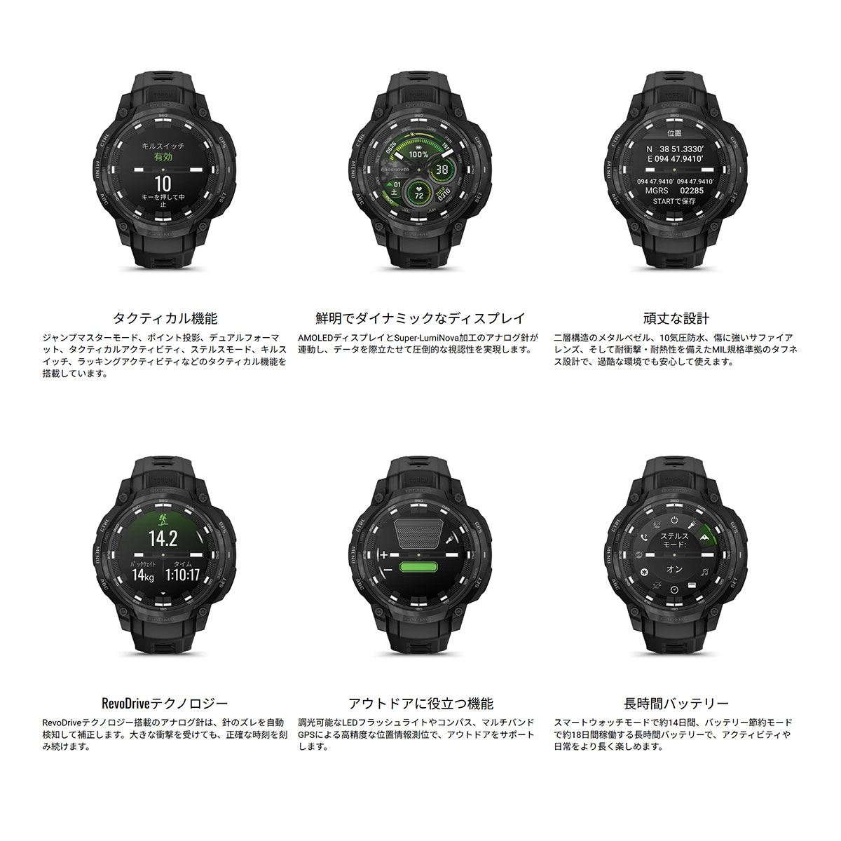 ガーミン GARMIN Instinct Crossover AMOLED Tactical インスティンクト クロスオーバー アモレッド タクティカル GPS スマートウォッチ 腕時計 010-03398-32 Tactical Black