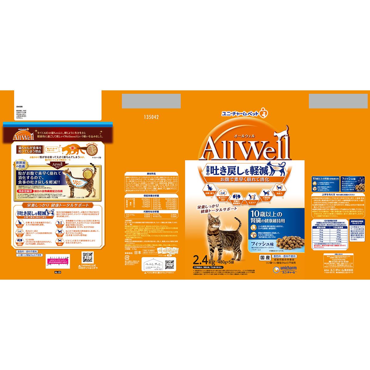 腎臓の健康維持に配慮して、リンを制限(*室内猫用比 約95%)、Ca/P比調整、適塩設計。