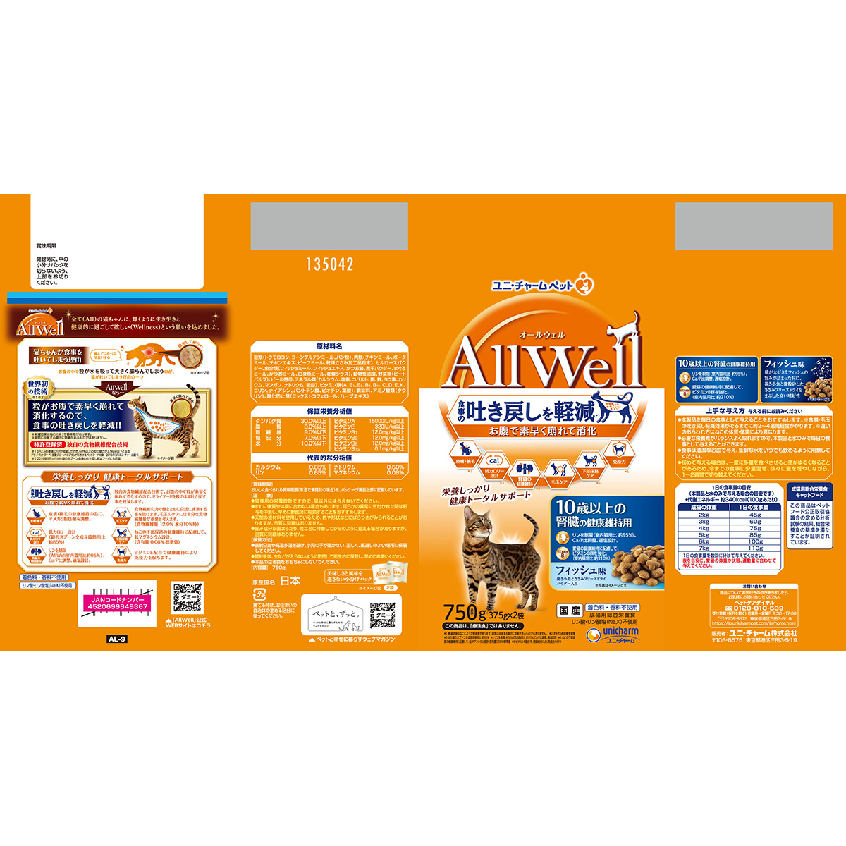 腎臓の健康維持に配慮して、リンを制限(*室内猫用比 約95%)、Ca/P比調整、適塩設計。