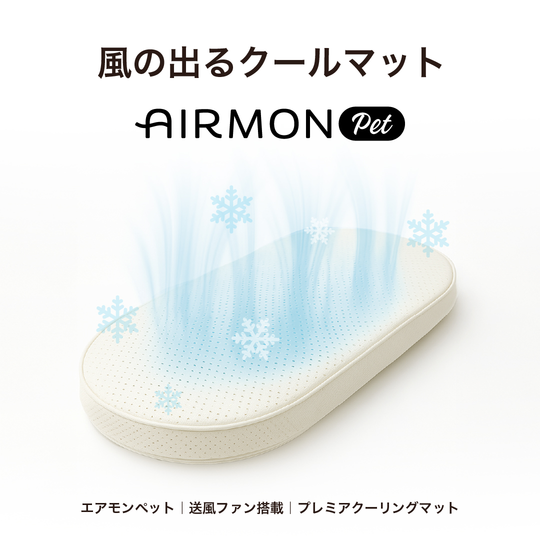 ペットカート用送風型クールマット『エアモン・ペット』!冷やすのではなく、空気を動かすという新発想で、熱中が心配な季節に、安心できる暑さ対策を提供するペットカート用送風型クールマットです。