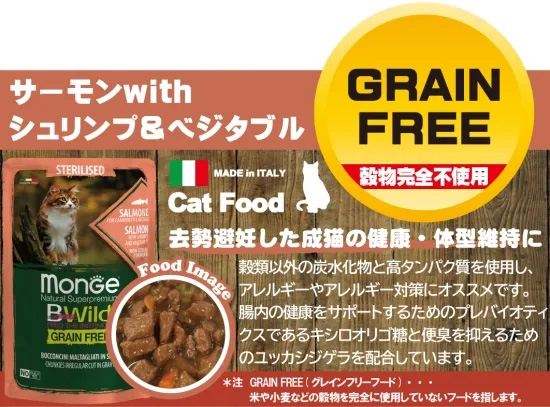 | 商品名 | ビーワイルド B Wild キャットフード パウチ サーモンwithシュリンプ&ベジタブル グレインフリー |