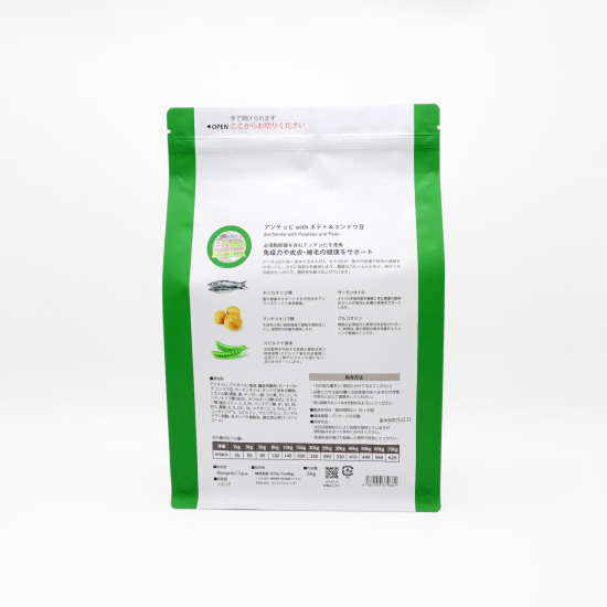 アンチョビに多く含まれるオメガ3、オメガ6が、愛犬の皮膚や被毛の健康をサポートし、さらに免疫力を維持します。豊富なカルシウムとともに、魚のうまみ成分たっぷりで、嗜好性も高く仕上げています。