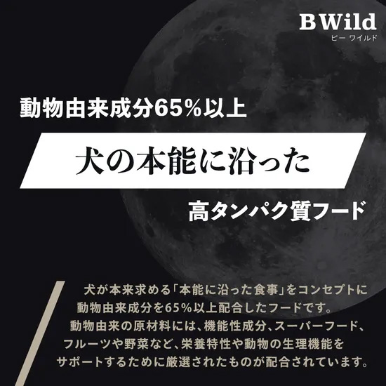 ■特徴 スーパーフードや様々なフルーツと野菜のミックスB Wild “Feed the instinct”は、犬の自然な本能に沿った食事を与えるために考案した革新的なラインです。