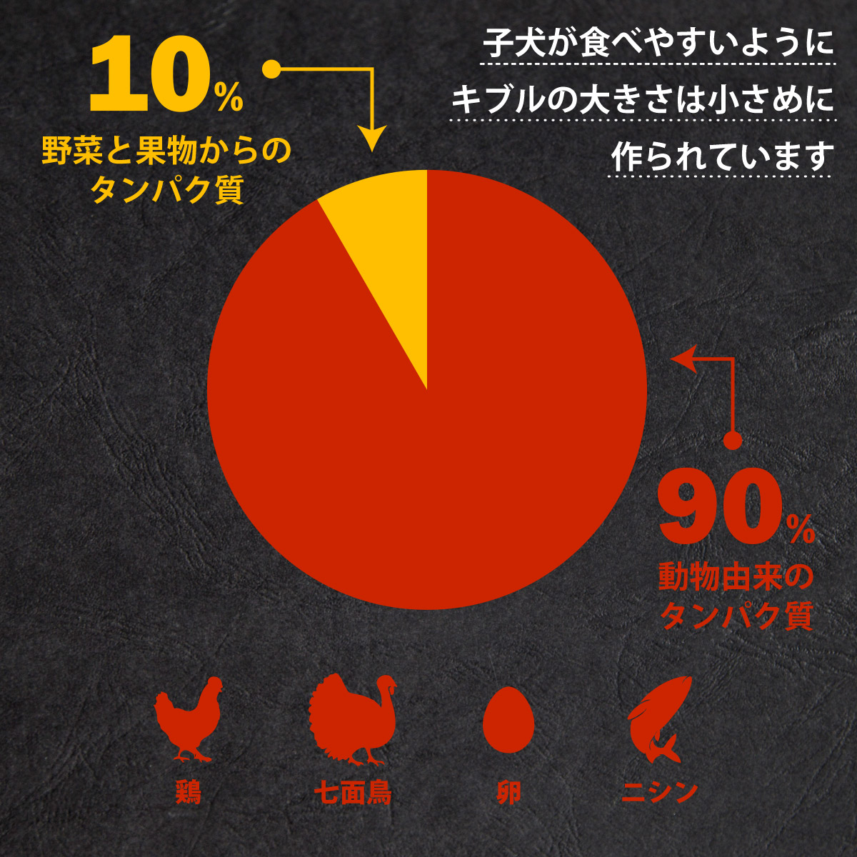 【原材料】鶏ミール(20.3%)、サーモンミール(11.8%)、七面鳥ミール(11%)、グリーンピース、赤レンズ豆、ヒヨコ豆、鶏脂肪(8.7%)、粉末卵(7%)、ビール酵母、鶏レバー(1.7%)、ビートパルプ、ニシンミール(1%)、ニシン油(0.5%)、プロピオン酸カルシウム、レシチン、ケルプミール、硫酸水素ナトリウム、塩化コリン、塩化カリウム、DL-メチオニン、塩、ユッカシジゲラエキス、クエン酸、タウリン、クランベリー、ブルーベリー、乾燥トマトポマース、カボチャ、リンゴ、ホウレン草、ペパーミント、カモミール、ターメリック、セロリ種子、乾燥ローズマリー、硫酸亜鉛、硫酸第一鉄、ビタミンEサプリメント、ナイアシンサプリメント、硫酸銅、L-リジン塩酸塩、セレンタンパク化合物、亜セレン酸ナトリウム、チアミン硝酸塩、硫酸マンガン、グルコサミン塩酸塩、コンドロイチン硫酸、ヨウ素酸カルシウム、パントテン酸カルシウム、ビタミンAサプリメント、ビタミンB-12サプリメント、ビタミンKサプリメント、リボフラビン、塩酸ピリドキシン、ビオチン、炭酸コバルト、葉酸、ビタミンD-3サプリメント【賞味期限】製造から16ヶ月【カロリー】3700kcal/kg【生産国】カナダ【保証成分】粗たんぱく質(以上)38%、粗脂肪(以上)18%、粗繊維(以下)5%、粗灰分(以下)9%、タウリン(以上)0.3%、水分(以下)10%、マグネシウム(以下)0.1%、カルシウム(以上)1.7%、リン(以上)1%