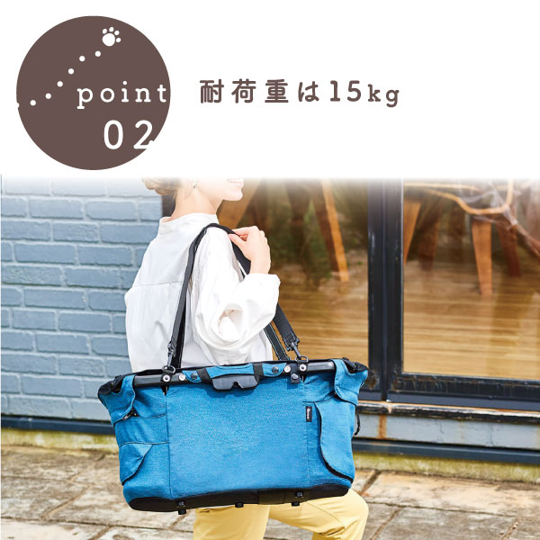 キャリーサイズとともに、耐荷重も12kgから15kgにアップ。大きなワンちゃんや2匹のペットでもゆったり使えます。