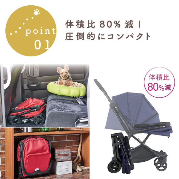 車体を折りたたむと、体積比80%減の超コンパクト設計!自動車に載せる時も、玄関に置く時も収納場所に困りません。