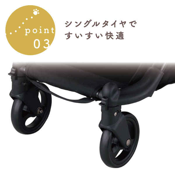 前後輪シングルタイヤで、押す時に足がタイヤにぶつかりにくく快適です。