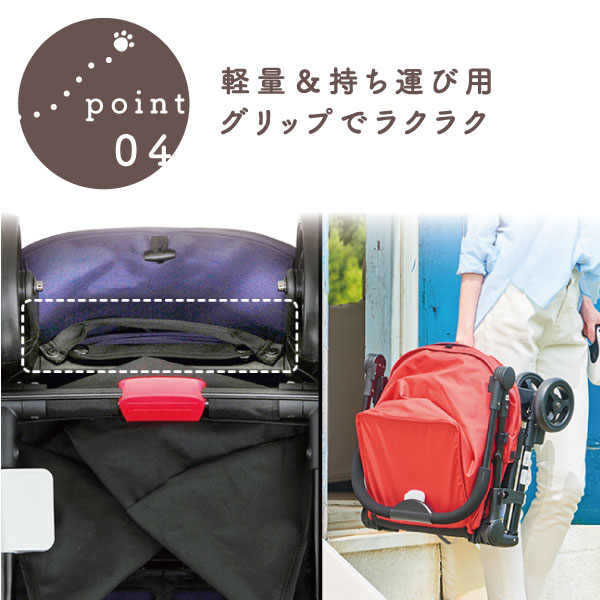 重量は軽量6.1kg。更に「持ち運び用グリップ」で畳んだ車体を手に提げて持てるので、ラクラク運ぶことができます。