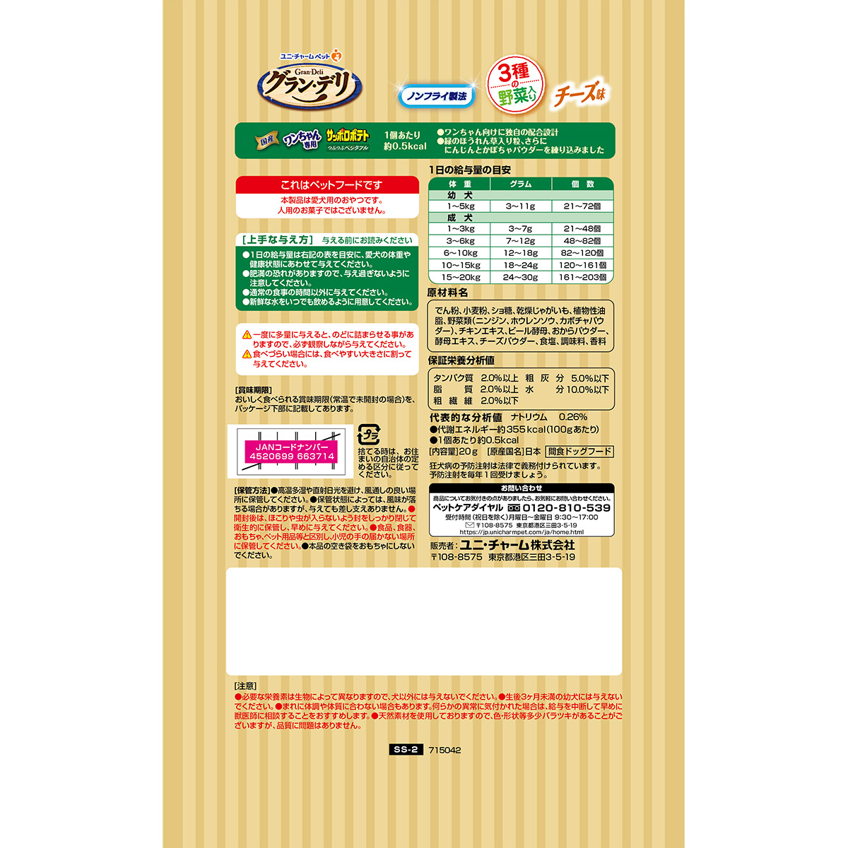 グラン・デリ 犬用おやつ ワンちゃん専用サッポロポテト つぶつぶベジタブル チーズ味 20g×36個