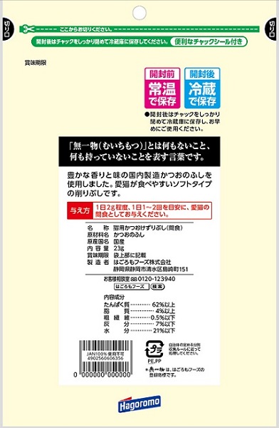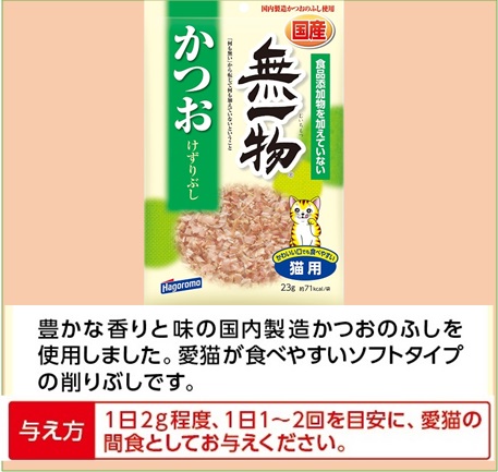 1日2g程度、1日1~2回を目安に愛猫の間食としてお与えください