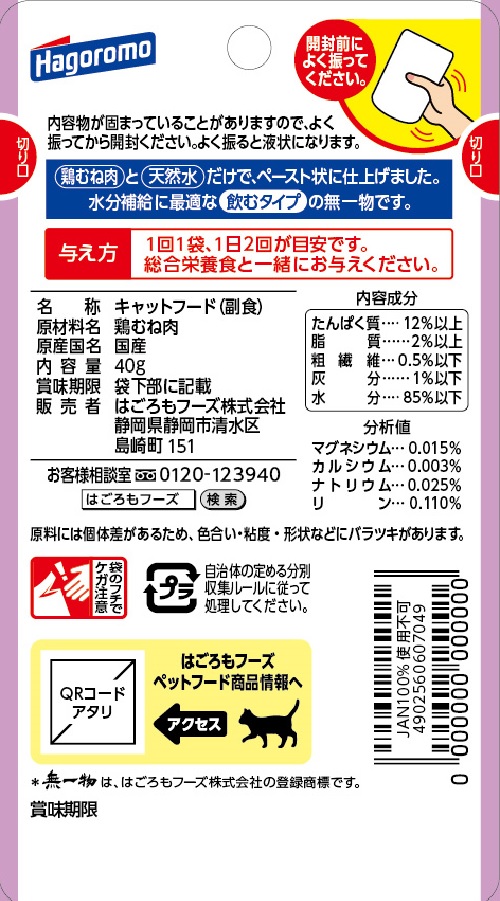 1回1袋、1日2回が目安です。総合栄養食と一緒にお与えください。