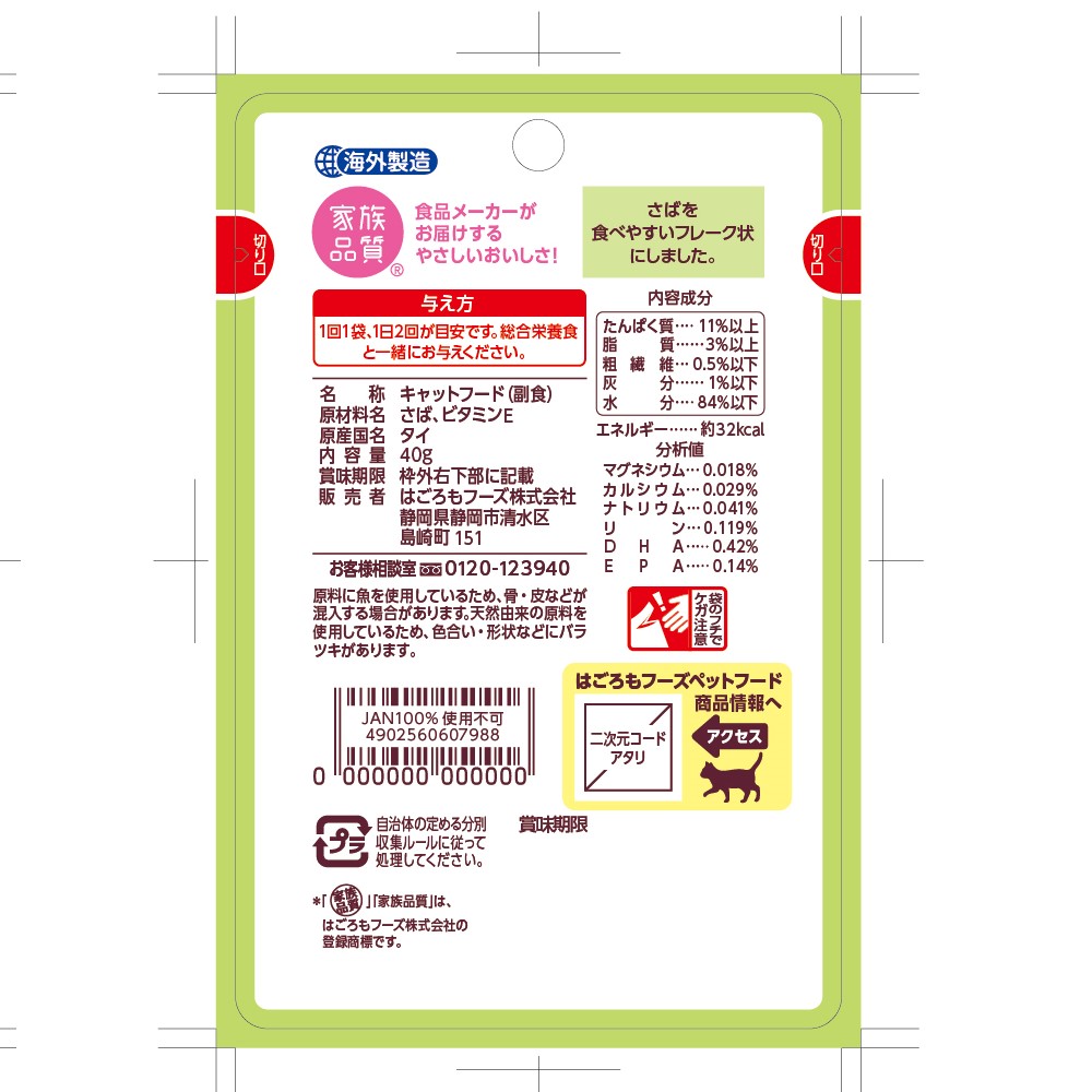 はごろもフーズ にゃんチュラル キャットフード パウチ さばのフレーク