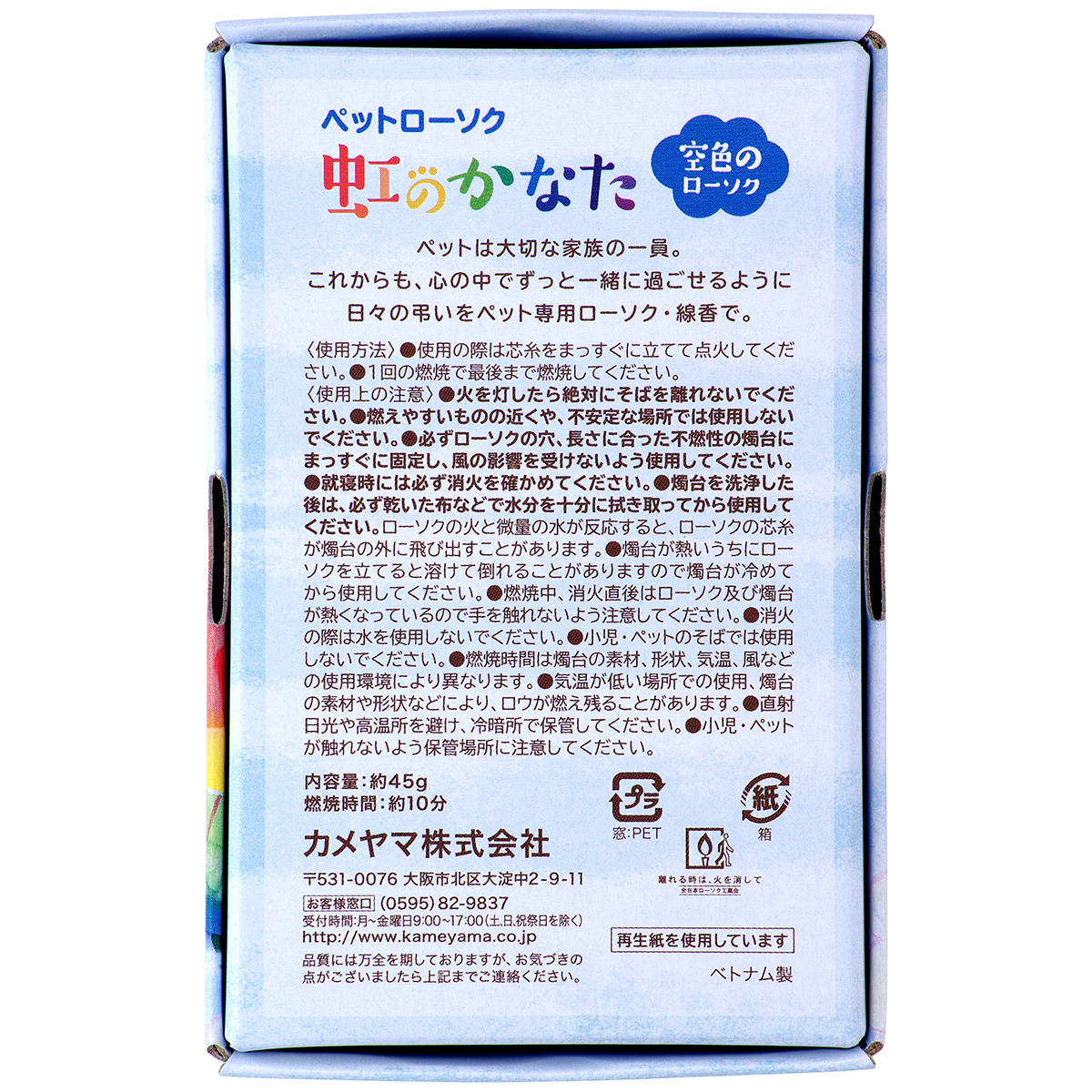 商品名カメヤマローソク ペットローソク 虹のかなた 空色