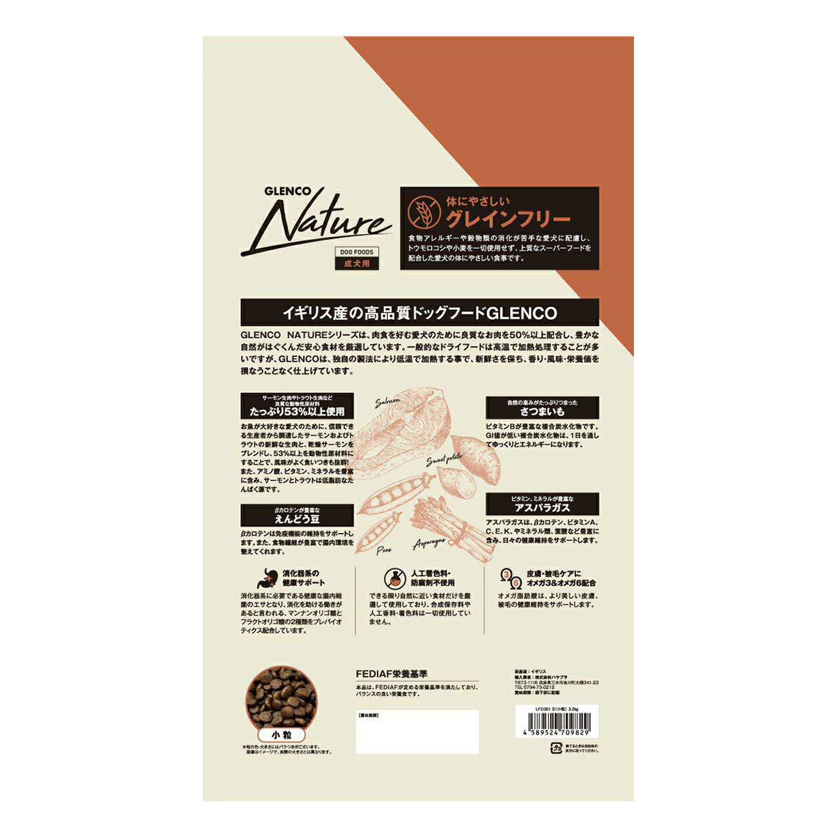 グレンコ GLENCO ドッグフード ナチュール グレインフリー 成犬用 サーモン 小粒 3.2kg
