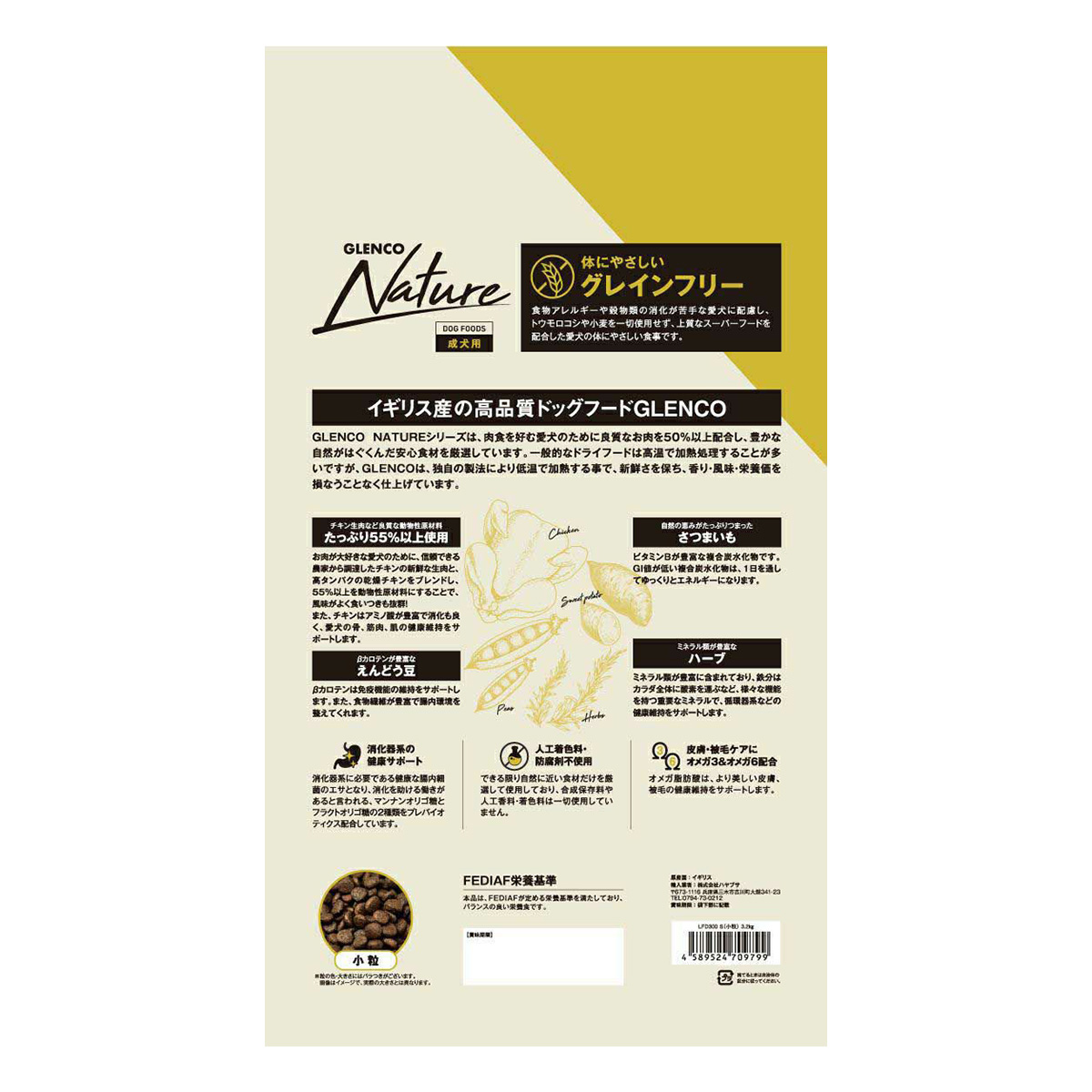商品名グレンコ GLENCO ドッグフード ナチュール グレインフリー 成犬用 チキン 小粒