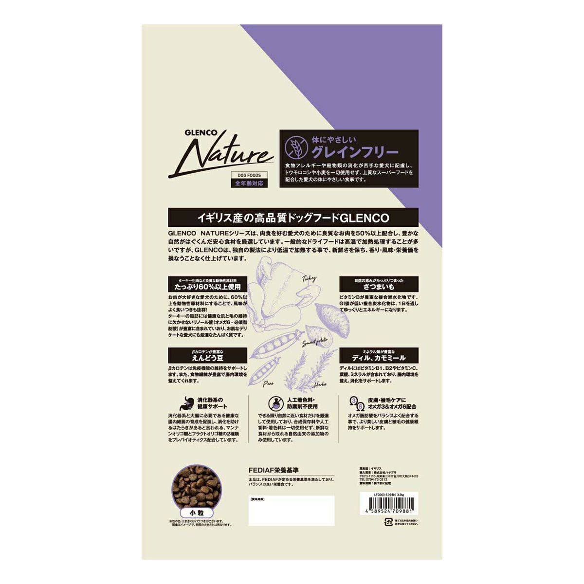 一般的なドライフードは高温で加熱処理することが多いですが、GLENCOは、独自の製法により低温で加熱する事で、新鮮さを保ち、香リ・風味栄養価を損なうことなく仕上げています。