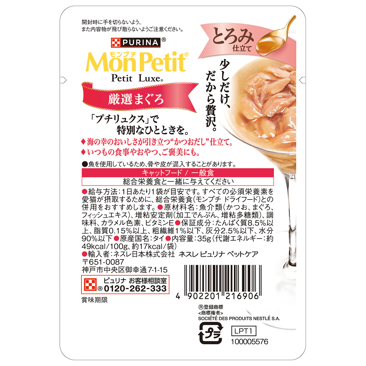 | 商品名 | ネスレ ピュリナ モンプチ プチリュクス キャットフード ジュレ まぐろとかつおのしらす添え |