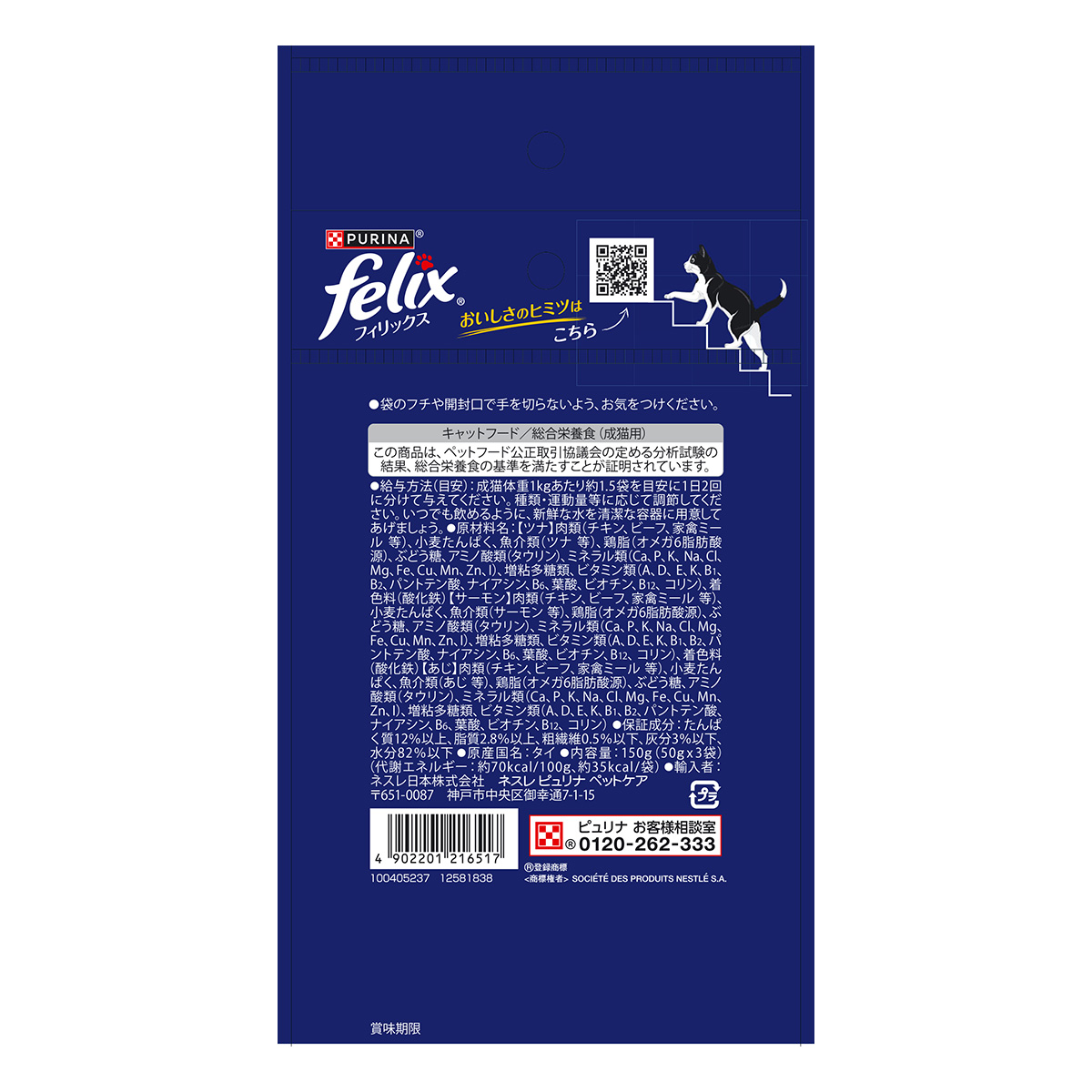 | 保証成分:たんぱく質8.5%以上、脂質0.2%以上、粗繊維1%以下、灰分2.5%以下、水分88%以下 | |