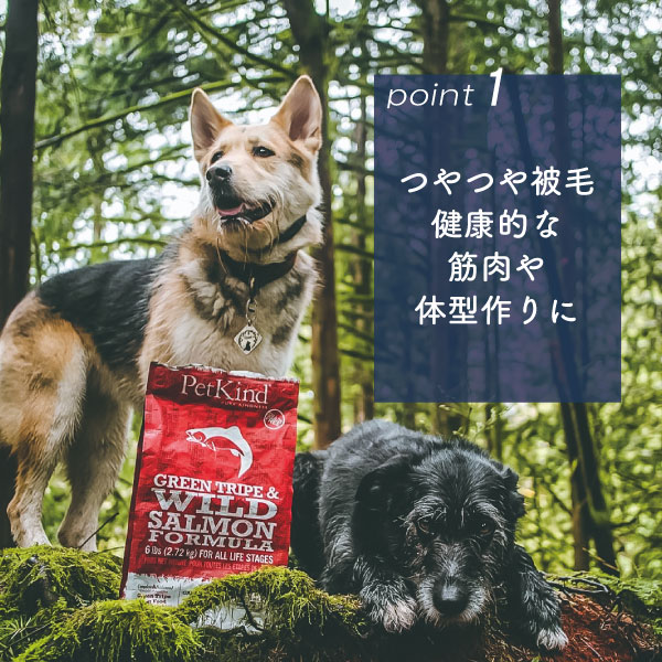 トライプファースト&グレインフリーの総合栄養食。愛犬の健康のためにトライプを第一主原料に使用。さらに、ナチュラルフード、ヒューマングレード、グレインフリーにこだわり肉食の愛犬の本来の食事に配慮しました。