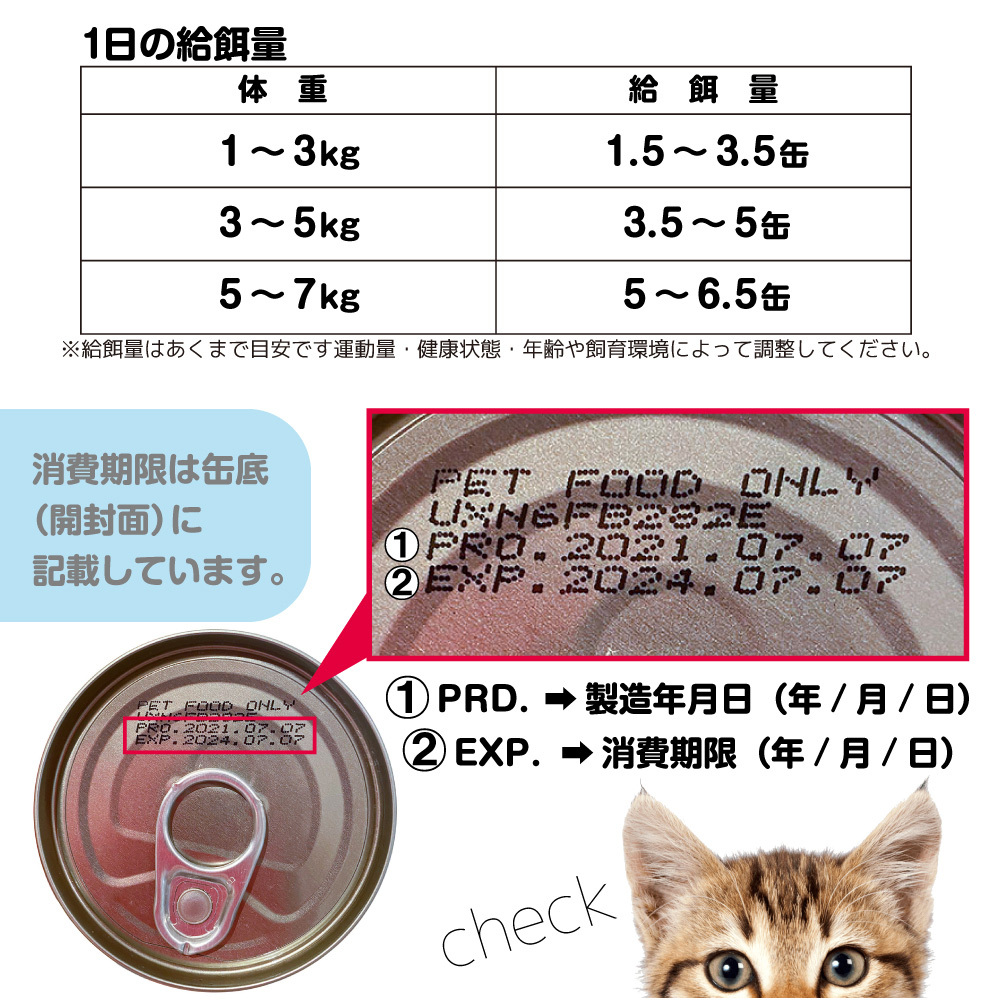 | 【1日の目安】1~3kg(1.5~3.5缶)、3~5kg(3.5~5缶)、5~7kg(5~6.5缶) |
