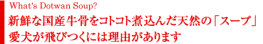 全頭検査済の食肉用国産牛のみ使用。国産牛は食用として安定流通していることから、国内ではどの食材よりもトレーサビリティ(履歴)が管理しやすく、安全だと考えています。ドットわんスープの原材料「牛骨エキス」は無添加食品メーカーも使用する高い品質と安全性を誇っています。
