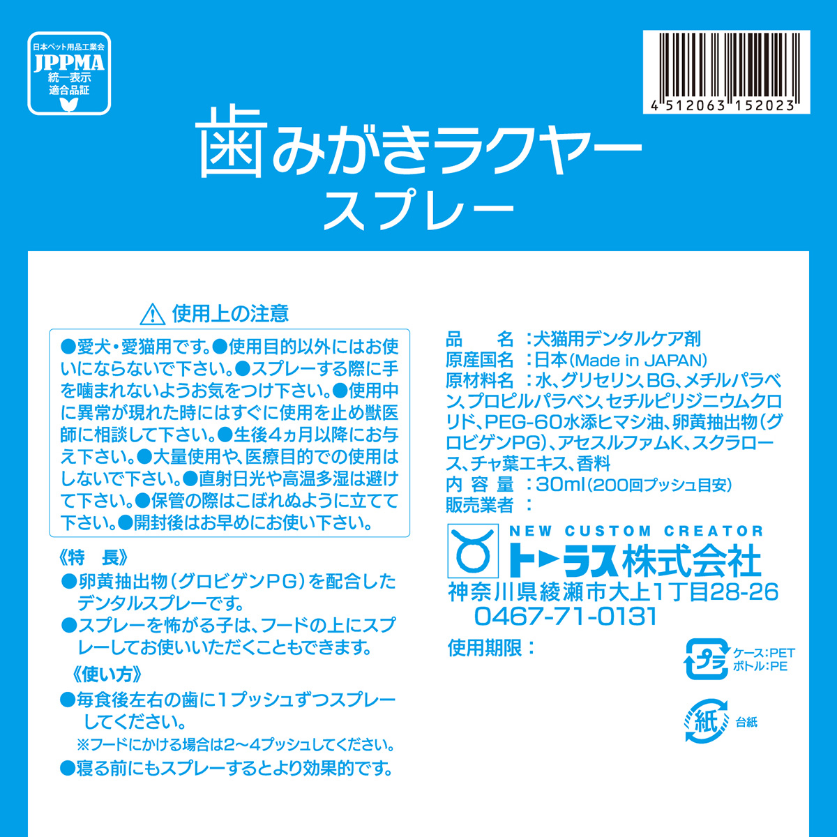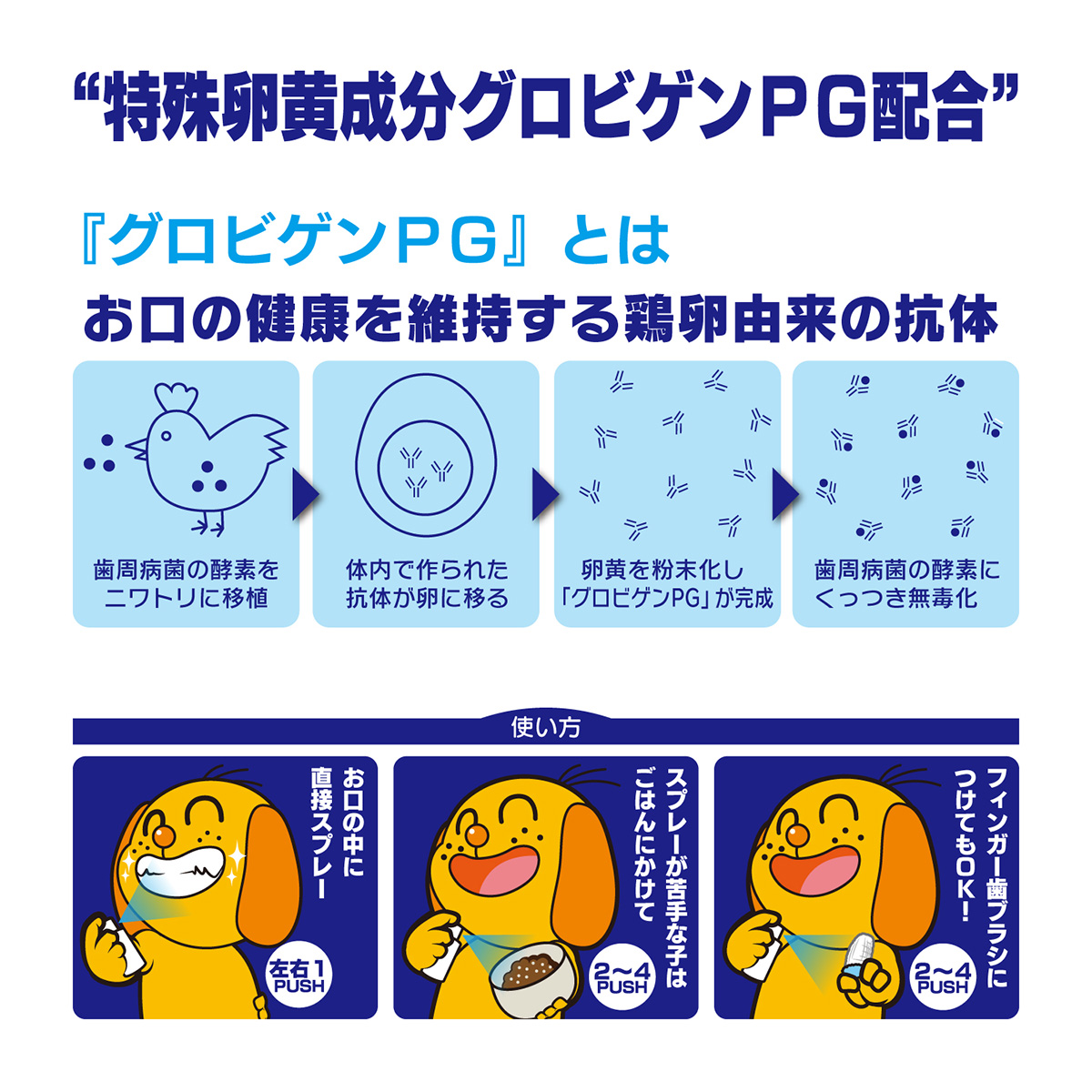 ◎毎食後左右の歯に1プッシュずつスプレーしてください。※フードにかける場合は2~4プッシュしてください。