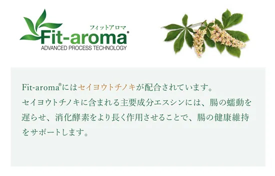 『Fit-aroma』Fit-aromaにはセイヨウトチノキが配合されています。