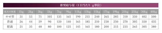 保障成分値(100gあたり) 粗タンパク質31%以上、粗脂肪17%以上、粗繊維4.5%以下、粗灰分10%以下、水分10%以下