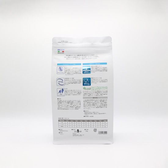 加水分解サーモンタンパク(16%)、タピオカ、ジャガイモ、動物性油脂(牛脂)※、乾燥鶏肉、乾燥ニンジン、動物性油脂(鶏脂)※、エンドウ豆繊維、乾燥魚(アンチョビ)、魚油(サーモンオイル)※、ビール酵母、キシロオリゴ糖(XOS 0.4%)、ミネラル類(マンガン、銅、鉄、セレン、ヨウ素)、アロエベラ(0.06%)、凍結乾燥メロン果実(SOD 源0.005%)、ミルクプロテインパウダー、酸化防止剤(植物油脂由来トコフェロール抽出物)※精製99.6%一天然酸化防止剤で保存